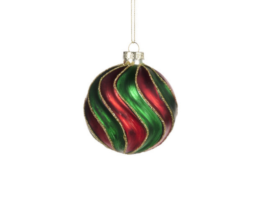 Glass 3D Swirl Stripe Ball & Finial Ornament – 8cm – Country of Origin : Belgium