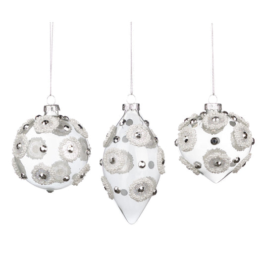 Glass Beaded Leaf and Vine Ball & Finial Ornament – Country of Origin : Belgium
