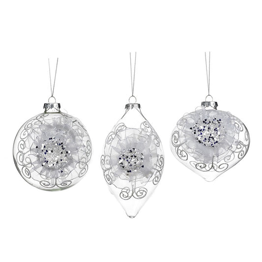 Glass Glitter Net Ball & Finial Ornament – 10cm – Country of Origin : Belgium