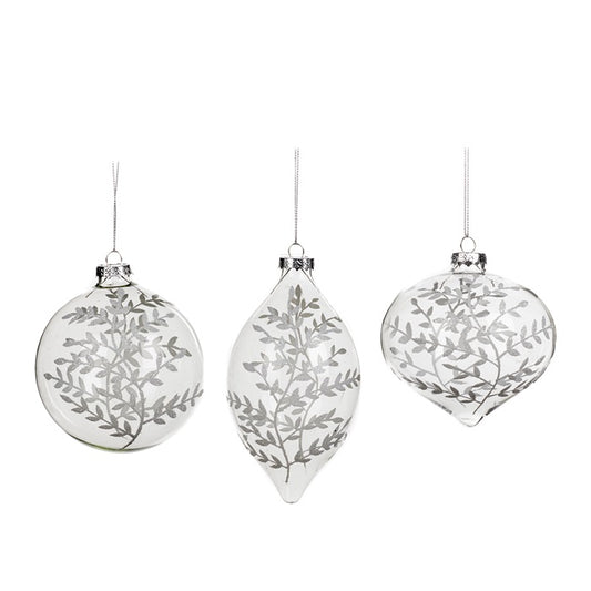 Glass Glitter Leaf/Twig Ball - Country of Origin : Belgium
