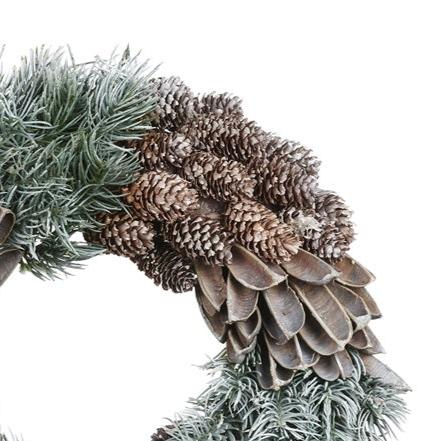 Frosted Pine, Leaf, and Pinecone Wreath - Country of Origin : Belgium