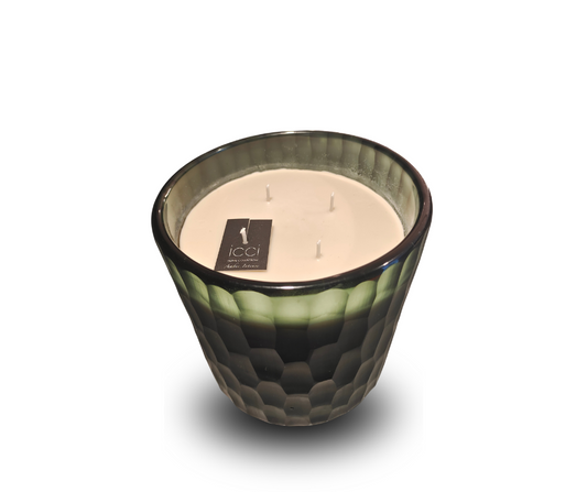 Scented Candle Green Glass Vase with Croco Design - Country of Origin: Belgium