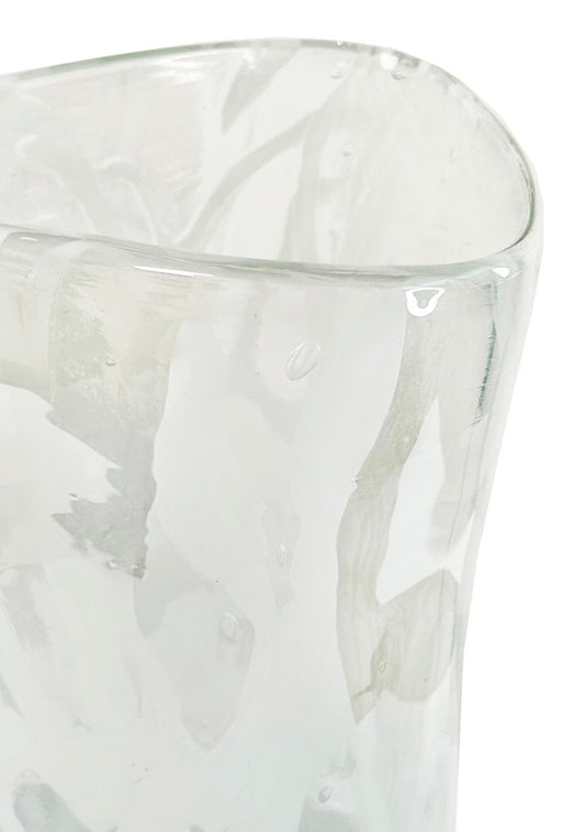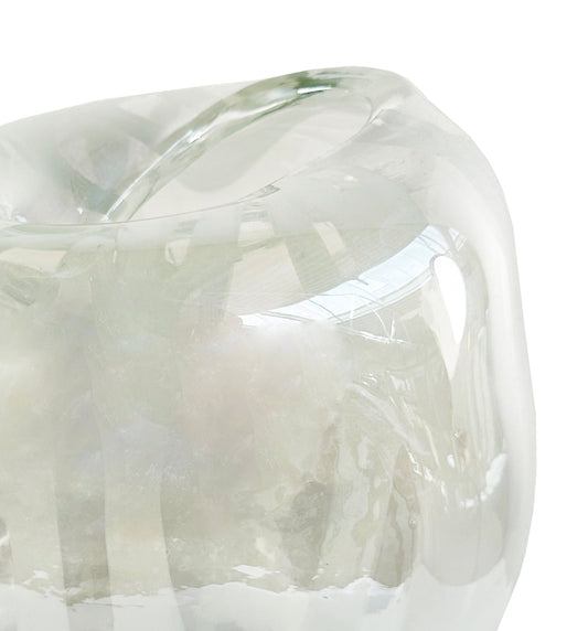 Glass organic ball shape vase clear white lines d20-22;h22cm - Country of Origin : Estonia
