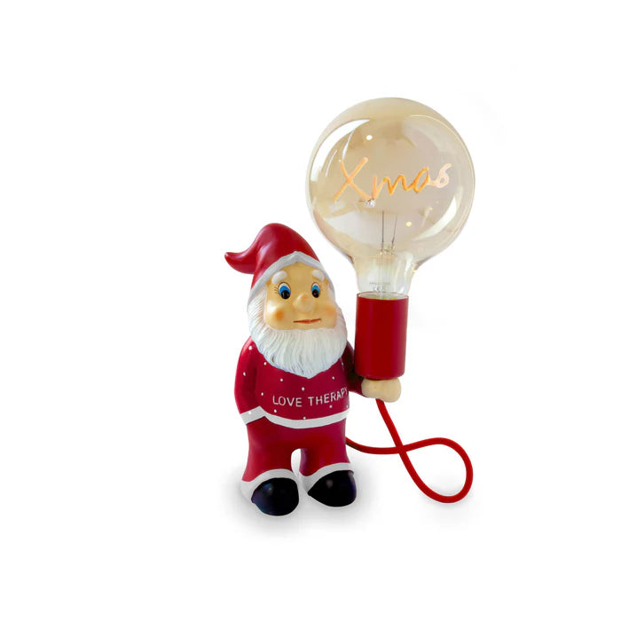 From the iconic dwarf created by Elio Fiorucci in 2003, a unique and witty table lamp is born. The "I Viaggi di Elio" collection was born from the encounter between LoveTherapy and Amarcords. The structure of the lamp is in ceramic and the LED bulb with Xmas type filament in amber glass is included.